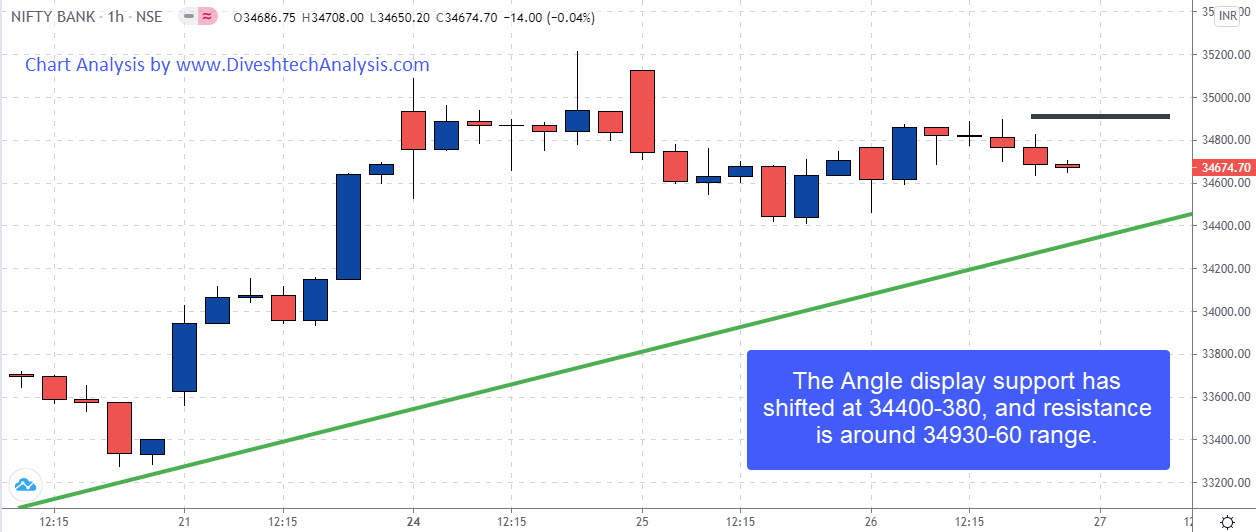 On the lower side, the Gann support level is 34600 below that Bank Index can move towards 34450/34250/33850 levels.