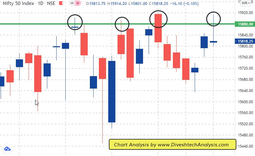 It’s the fourth time Nifty is struggling to close above 15880 levels. That’s the critical Gann level. A close above 15880 will add more strength to this upside trend. On the downside, 15770-760 price zone is the major support area.