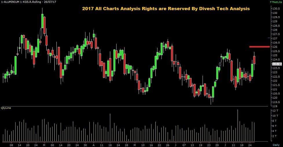 Above 126 on (Closing Basis) Mcx Aluminium is expected to move towards 129 / 132 (New Lifetime High)