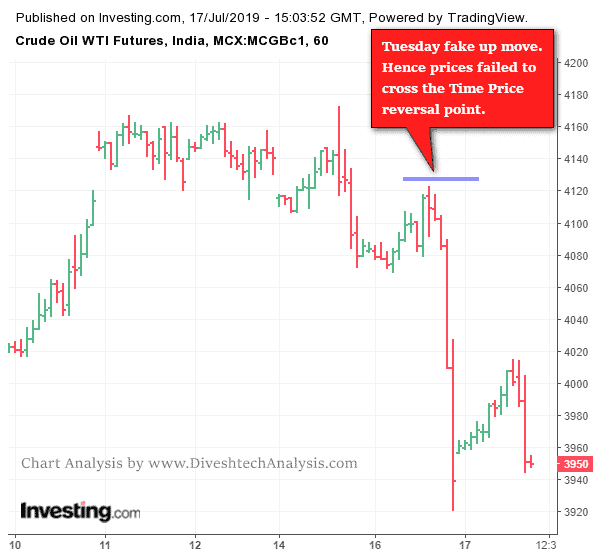 The Tuesday move was like an opportunity to add more in shorts; the Blue horizontal line is representing the Price Time reversal point for a shift in trend.