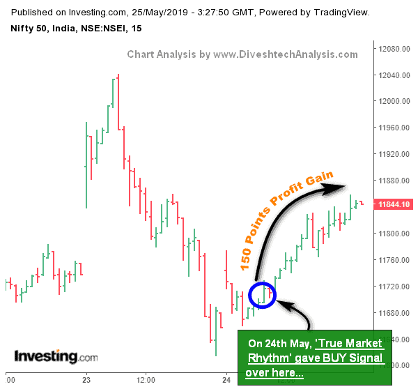 As time progresses, it moves in the Positive area & again, our Unique method, ‘True Market Rhythm,‘ gave us an excellent signal for taking Long positions in the market.