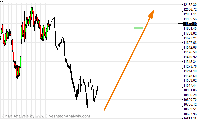 Yesterday Index traded in the range of 90 points. It made the low around 11800, which was Gann support level and high around 11895.