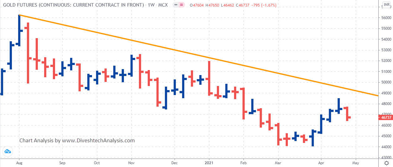 Support is at 46500 levels; below that, MCX Gold can move towards 46350/46050/45400.