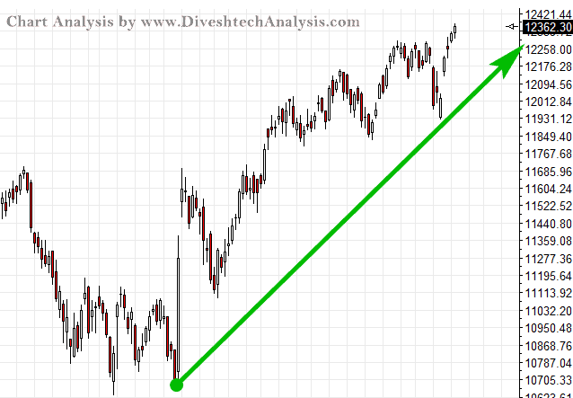 By the end of the day, Nifty made the new lifetime high around 12374 levels, just 9 points above our resistance level of 12365. However, the Index closing was below the 12365 range.